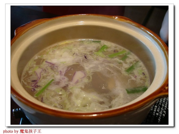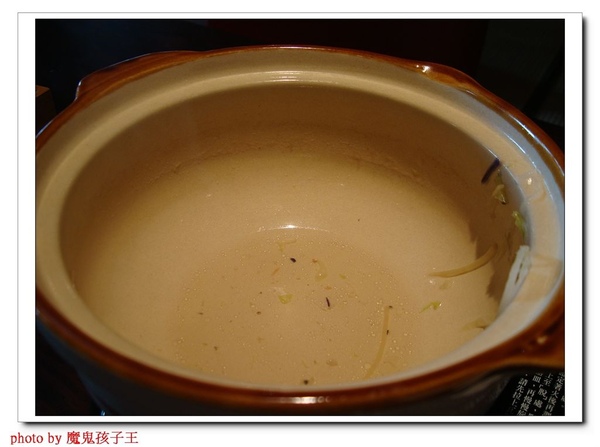 接著服務生送來一個陶鍋,探頭一看,怎麼清清如也?