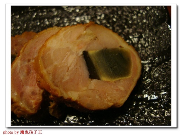 這是用雞腿肉捲皮蛋,雞腿肉有淡淡的煙燻香,