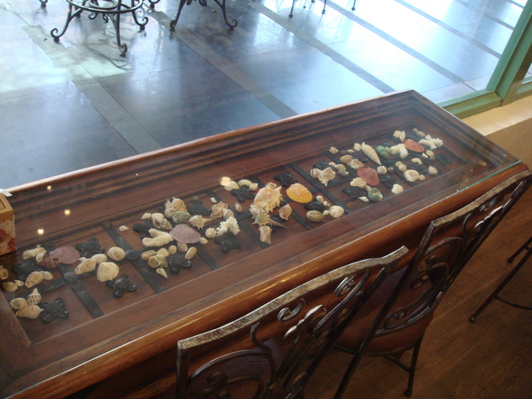 靠門口的這張桌子是貝殼桌