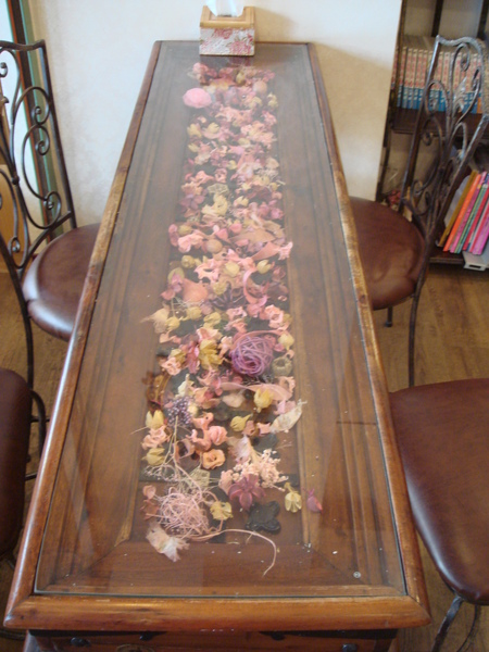 我要裝浪漫啦!來坐花瓣桌吧!