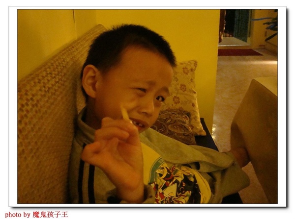 哈哈!因為店裡招待小朋友吃雞塊和薯條啦!