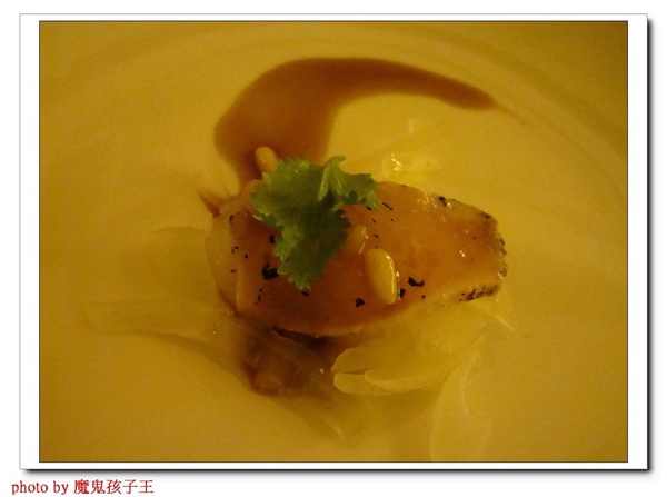半熟的旗魚片,淋上特製醬汁,灑上松子,