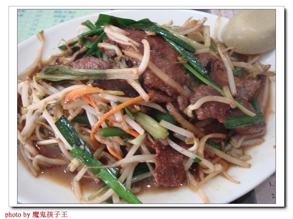 粉嫩的豬肝大火快炒,跟韭菜、豆芽的清脆口感超搭,