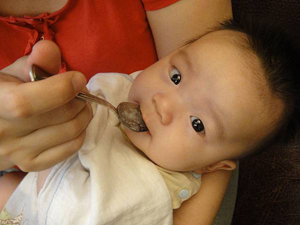第一次吃的是白粥糊加ㄋㄟ ㄋㄟ,