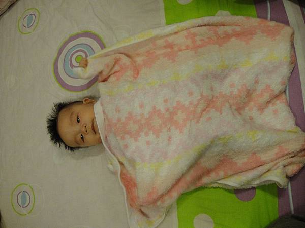 二寶是個仰睡寶寶,對於「翻」這件事沒什麼意願,